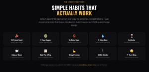Daily habit check-ins (protein, veggies, water, sleep, movement, etc.)